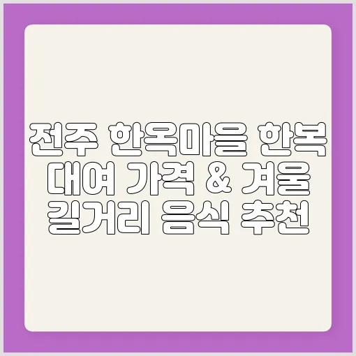 안녕하세요! 오늘은 전주 한옥마을에서 즐길 수 있는 다양한 체험과 맛집 정보, 특히 한복 대여 가격과 겨울 길거리 음식 추천에 대해 자세히 소개해 드릴게요. 전주는 한국의 전통이 살아 숨 쉬는 곳으로, 한옥의 아름다움과 따뜻한 겨울 음식, 그리고 특별한 한복 체험까지 모두 경험할 수 있는 최고의 여행지입니다. 처음 방문하는 분들도 어렵지 않게 즐기실 수 있도록 친절하게 안내드리니, 함께 떠나보시죠!